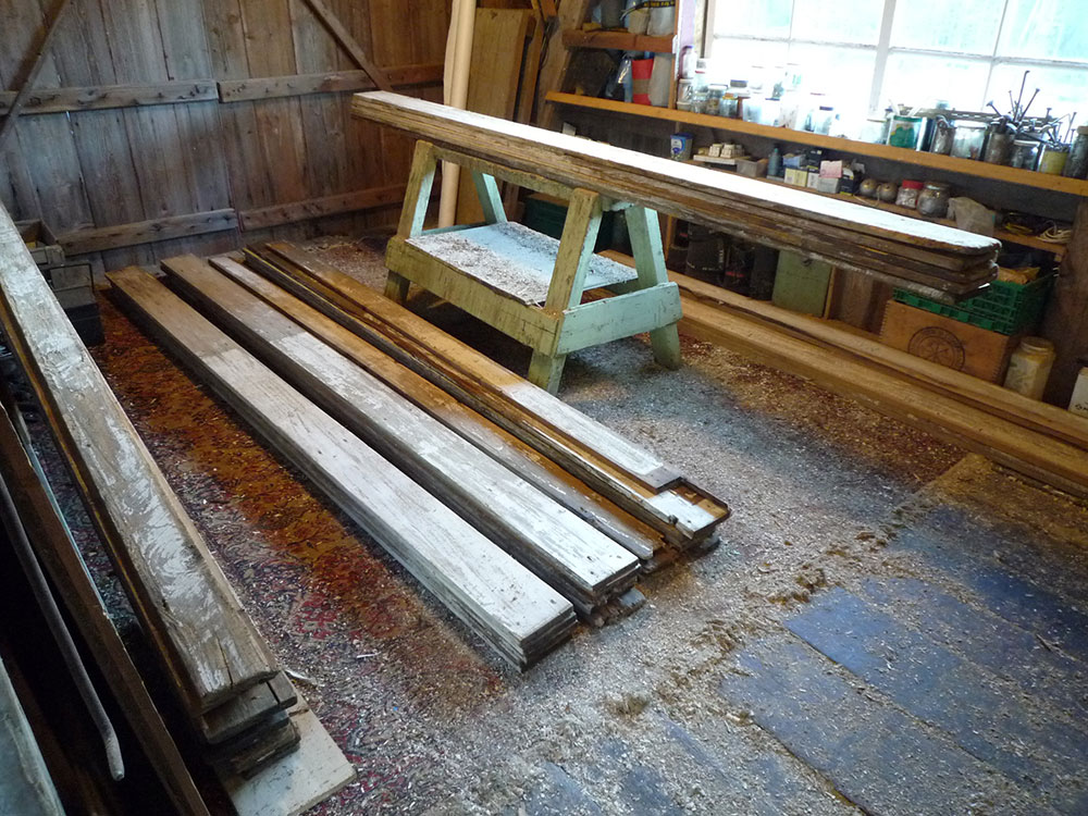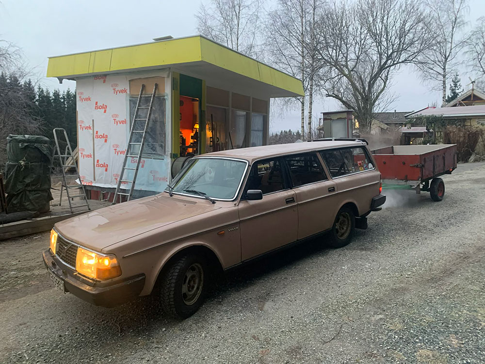 Vi dro tilbake, brakk løs den gamle dassen fra låvegavlen på gården, tok de tre vegger i grabben på Super Majoren, og flytta dem bort til Ringnes, under den gamle grana. Som første nye bygning. Snekra fjerdeveggen som mangla, med Erik & Totto.